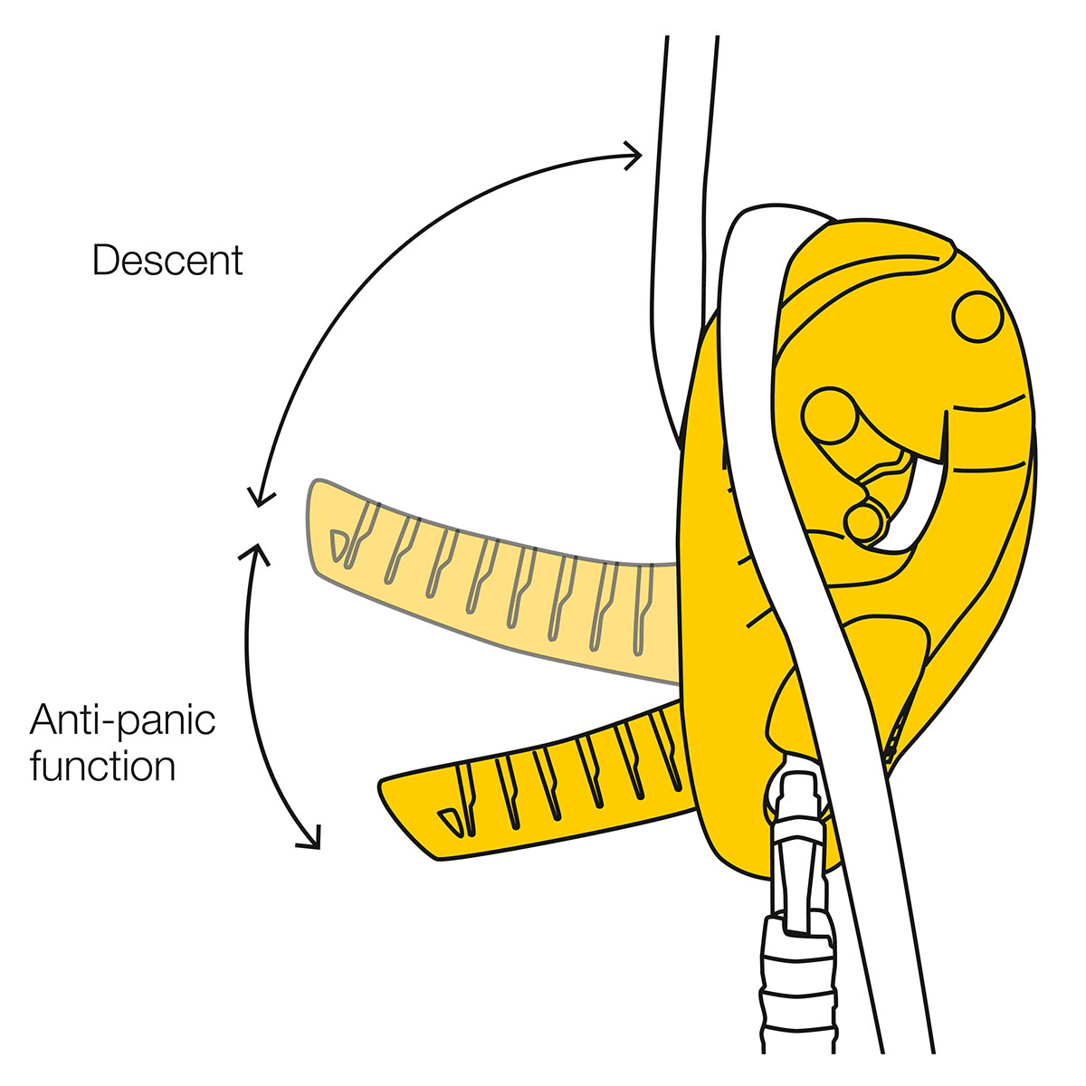 Selbstbremsendes Abseilgerät mit Anti-Panik-Funktion von Petzl