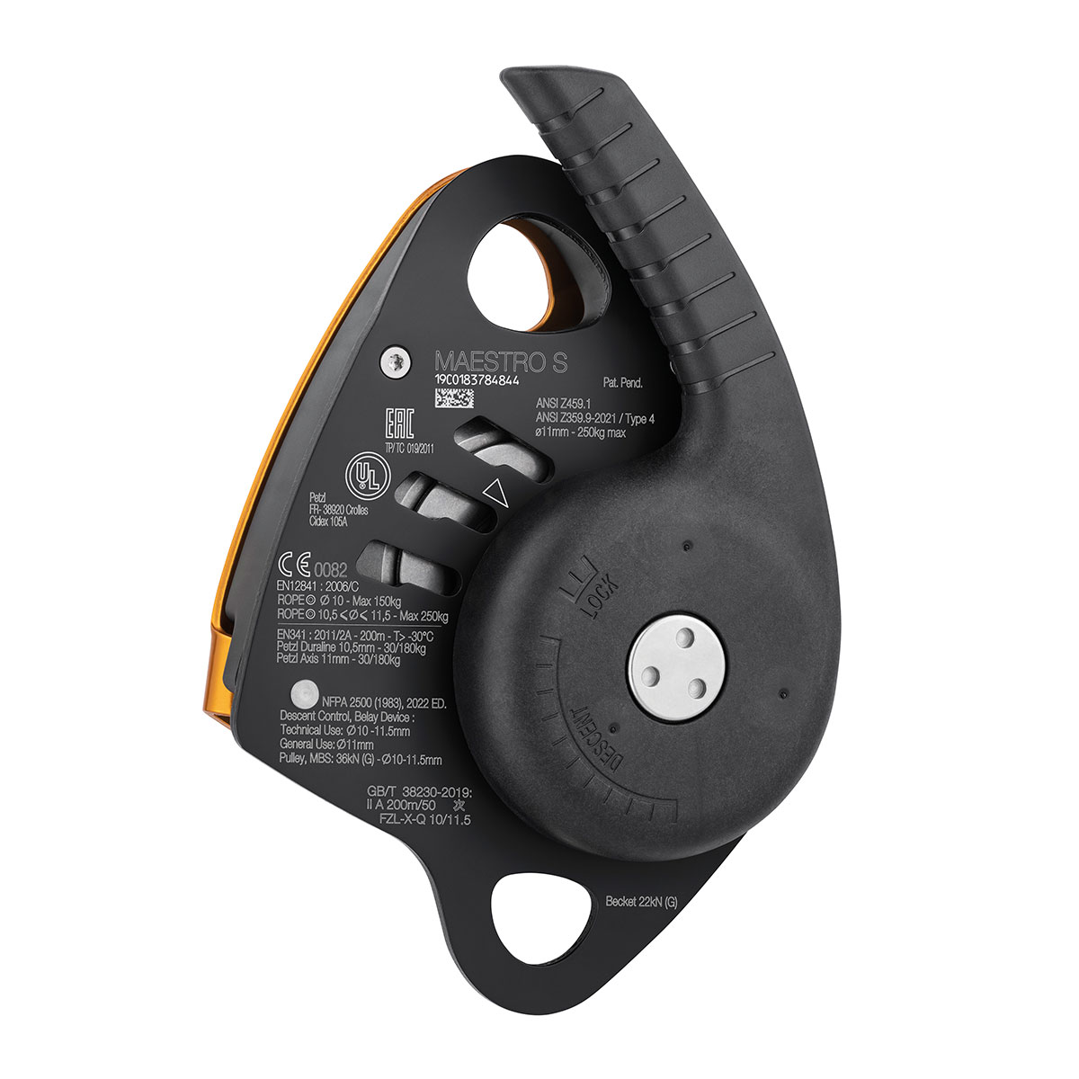 Das Petzl MAESTRO S ist ein Abseilgerät mit integrierter Umlenkrolle mit Rücklaufsperre und 3 Jahren Garantie