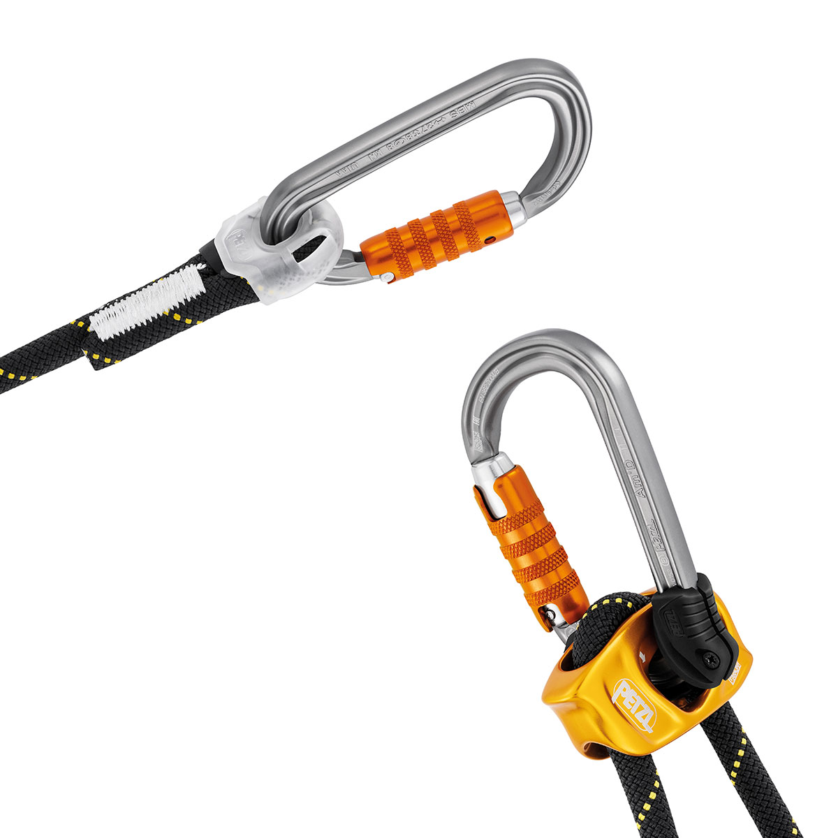 - Das Zubehör Petzl STUART erleichtert das Einhängen, damit das Verbindungsmittel die richtige Position hält
