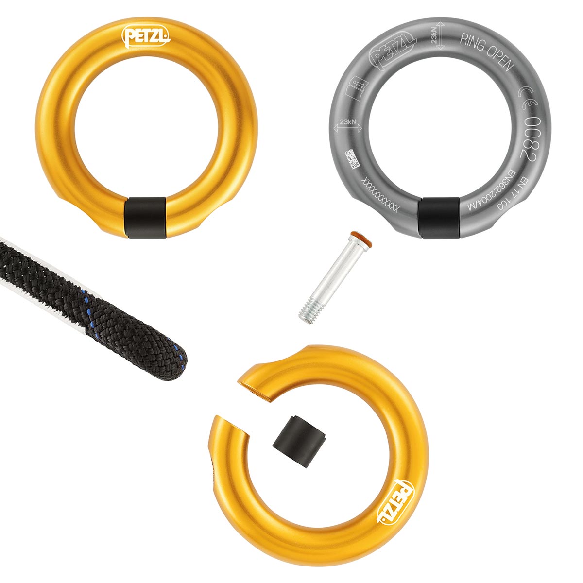 - Die Petzl RING OPEN Öse ist für dauerhafte Verbindung der Ausrüstungselemente konzipiert