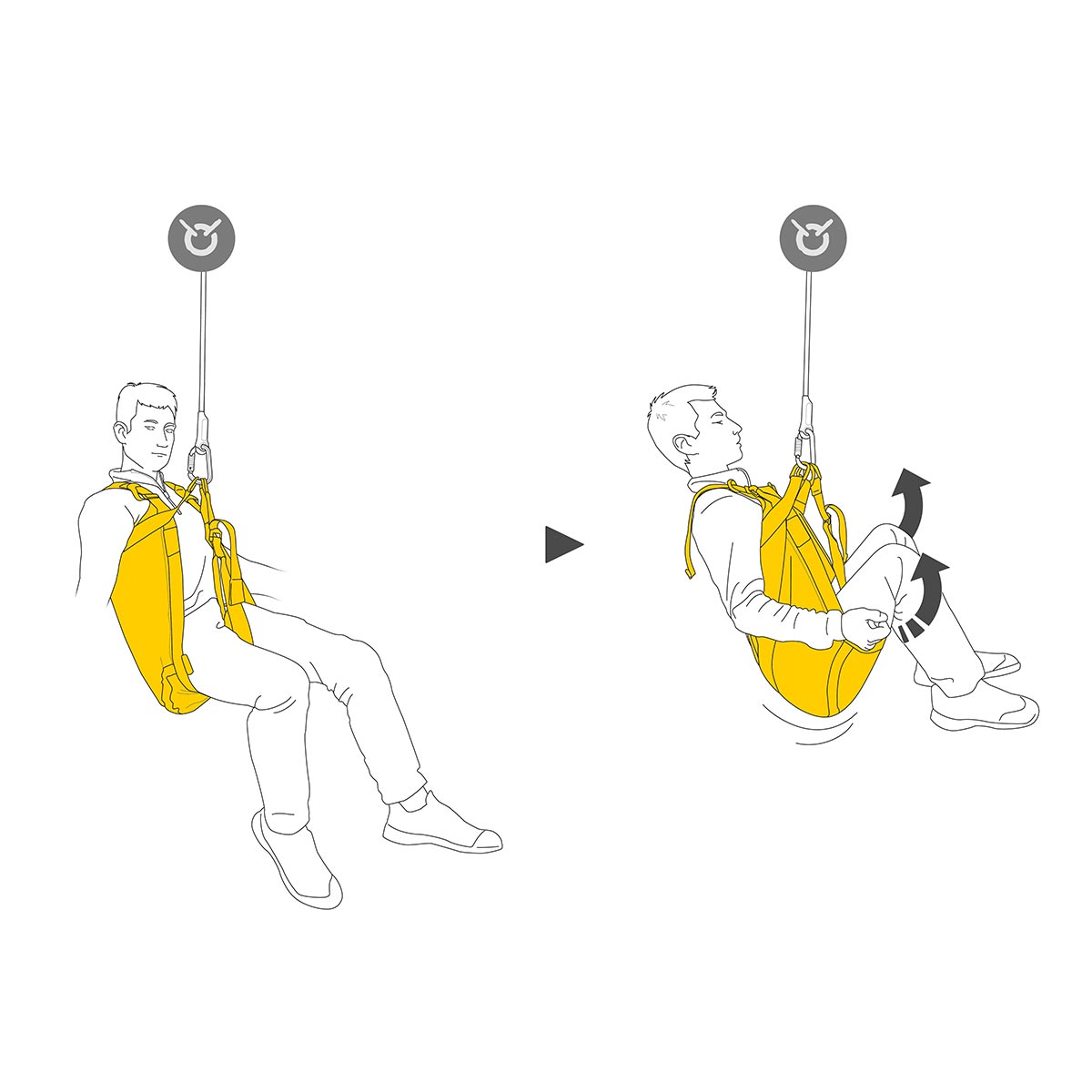 - Die Schulterträger sorgen dafür, dass das Rettungsdreieck nicht verrutscht und lassen die zu rettende Person in eine aufrechte Haltung bringen