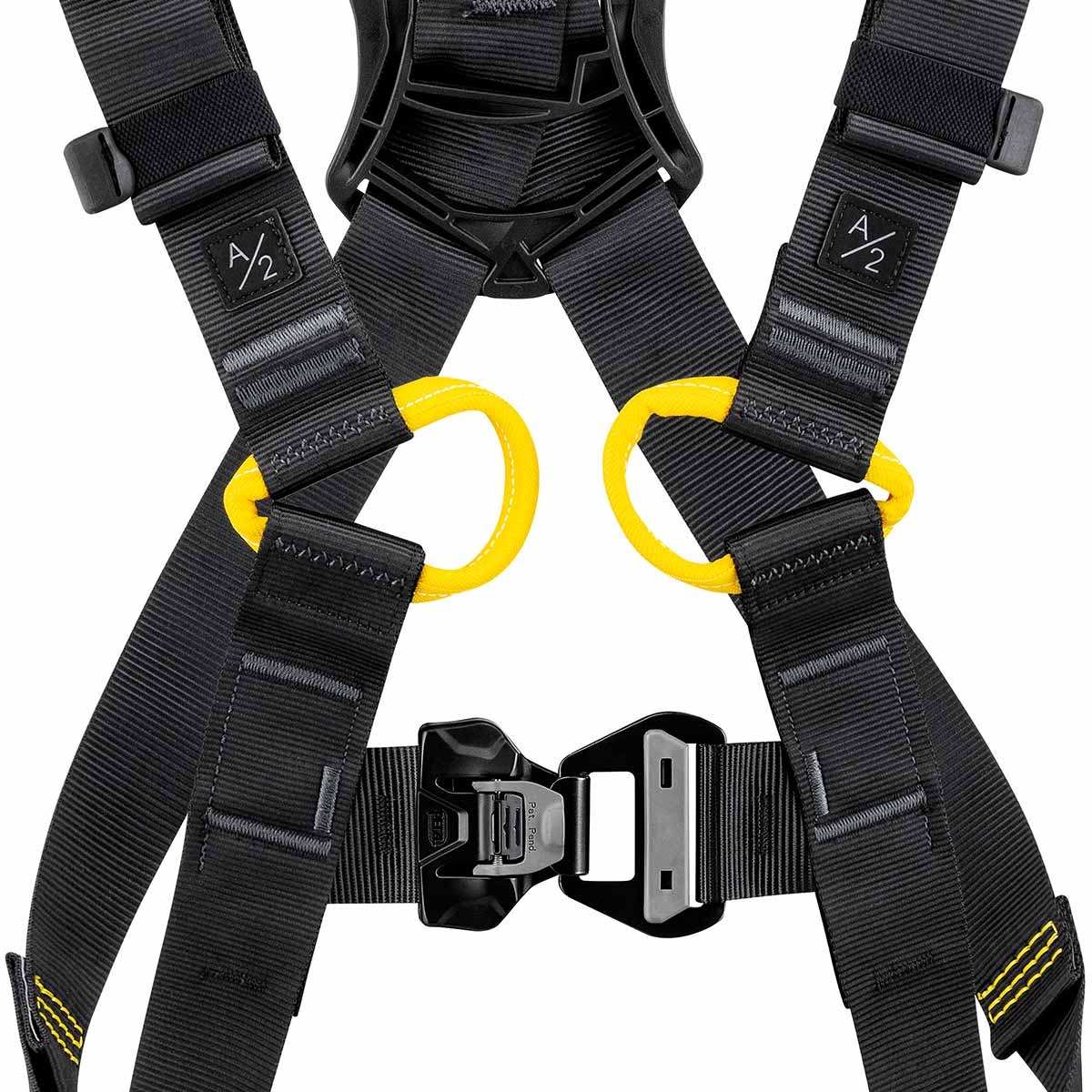 - Dorsale textile Auffangöse: zum Einhängen eines Höhensicherungsgeräts
