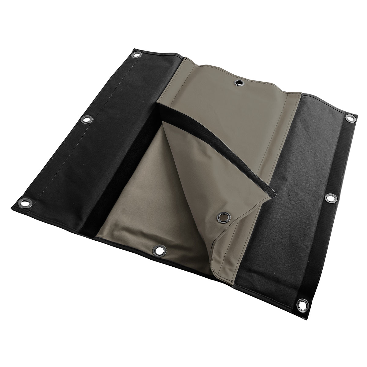 - Die dicke, innenliegende Naturfasermatte erhöht die Kantenradien, um eine geschmeidige, geschützte Seilbewegung zu gewährleisten ⇒ Seile werden so gegen scharfe Kante geschützt